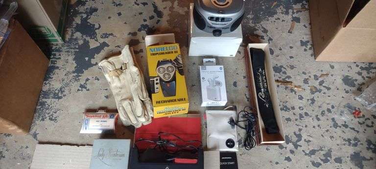LOT 103 - Plantronics wireless earbuds, Truly wire free earbuds, small cassette/radio, Political Convention Su
