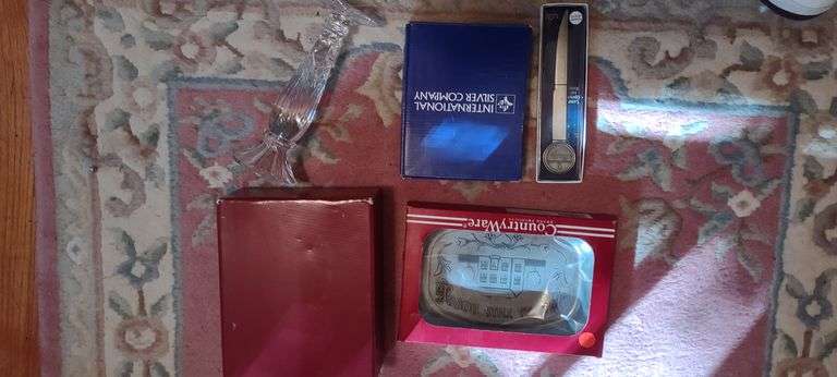 LOT 8 - Box lot containing pewter letter opener, crystal vase and more