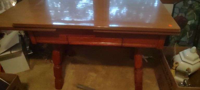LOT 25 - Wooden Slide Out Extension Table with Drawer