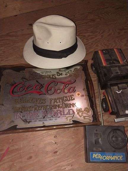LOT 34 - Old Coca Cola Mirrored Tray, hat, and RC Truck
