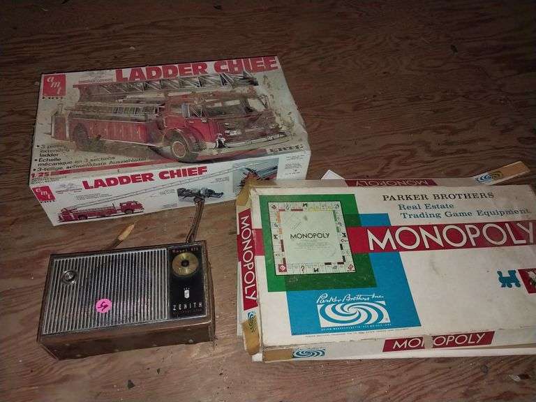 LOT 36 - AMT ERTL Ladder Chief model, Zenith all transistor and Monopoly game