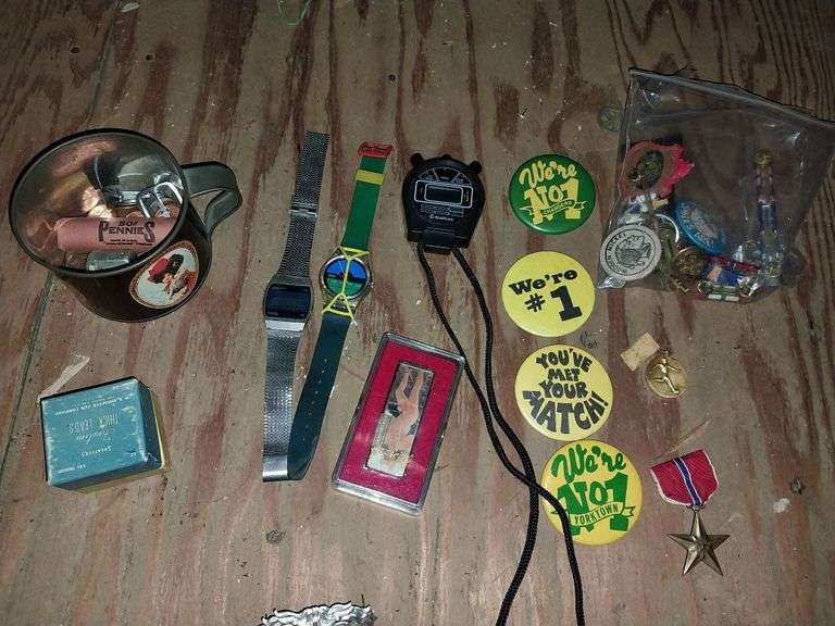 LOT 66 - Lot containing Swatch Watch, WW2 Bronze Star, Vintage Lighter, Mug, Pennies and more