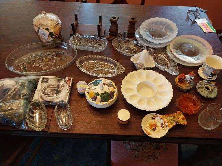 LOT 75 - Lot containing egg platter, serving dishes, match books, and more